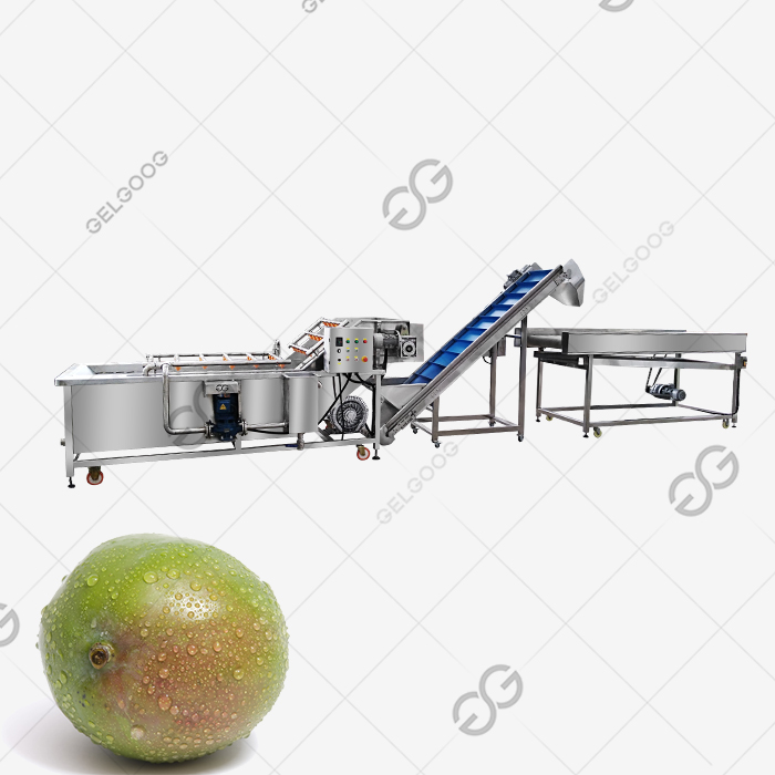 Mango washing machine can be used to process a variety of fruits and vegetables, such as mango, avocado, potato, tomato, pepper and so on. The processing capacity of fruit bubble washing machine is generally between 300kg/h and 5t/h. The washing machine in high-frequency vibration and water flow under the combined effect of doing tumbling state, mango with the mesh belt constantly forward, and has a shower head, high-pressure rinsing.